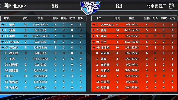 本场比赛末节,瓷器厂一度落后11分,他们在曹芳的带领下一度将分差迫近到3分但最后因马骁岐的罚球不中错失扳平机会。曹芳最后一投遭遇三人包夹选择传球韩邦三分出手不中遗憾败北。