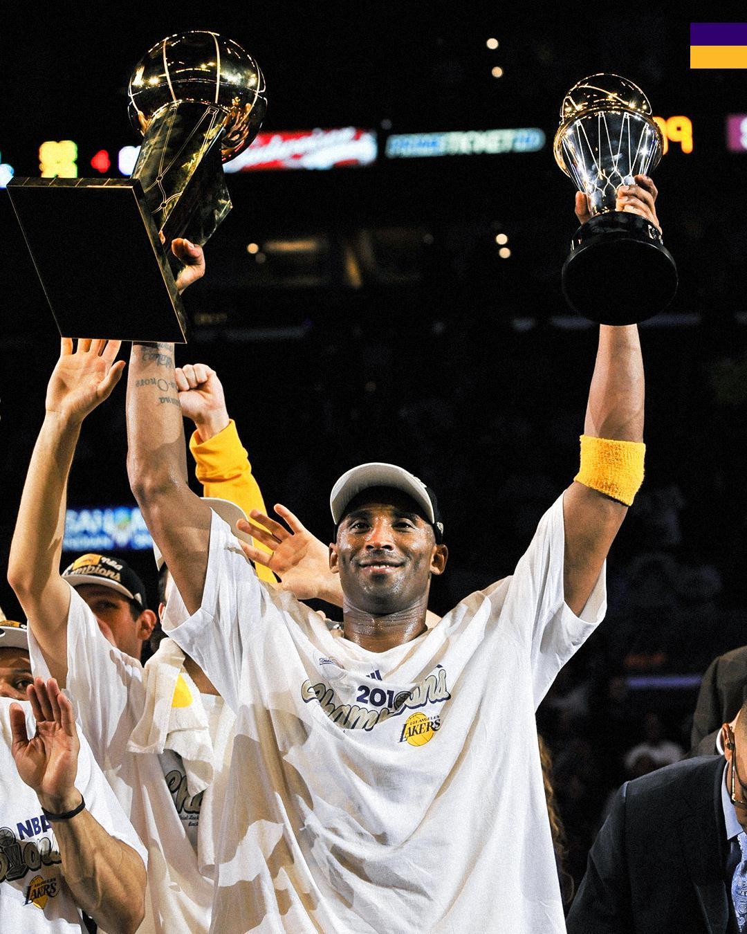 雷速体育8月25日讯 今日湖人官方为了致敬曼巴日,在社交媒体上晒出了科比生涯5次夺冠的精彩瞬间,并配文写道:“5次总冠军、2次FMVP。”